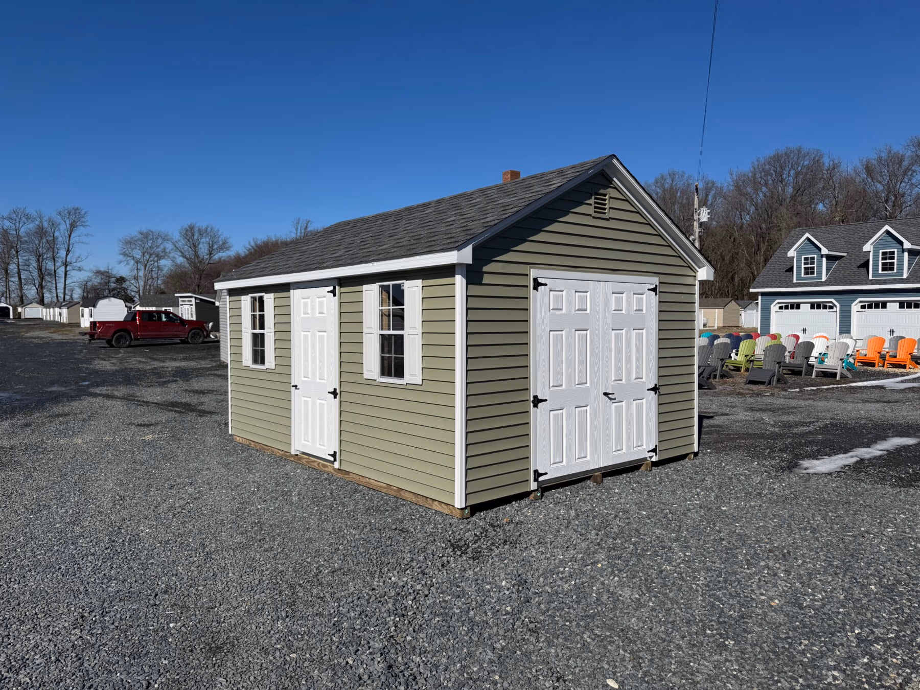 Our location in Denton, MD, is ideally located near the center of the Delmarva. We offer free delivery of sheds and garages to the state of Delaware and to Maryland’s Eastern Shore. If you fall outside our free delivery zone, we’re still happy to help. Please call us for a quote.