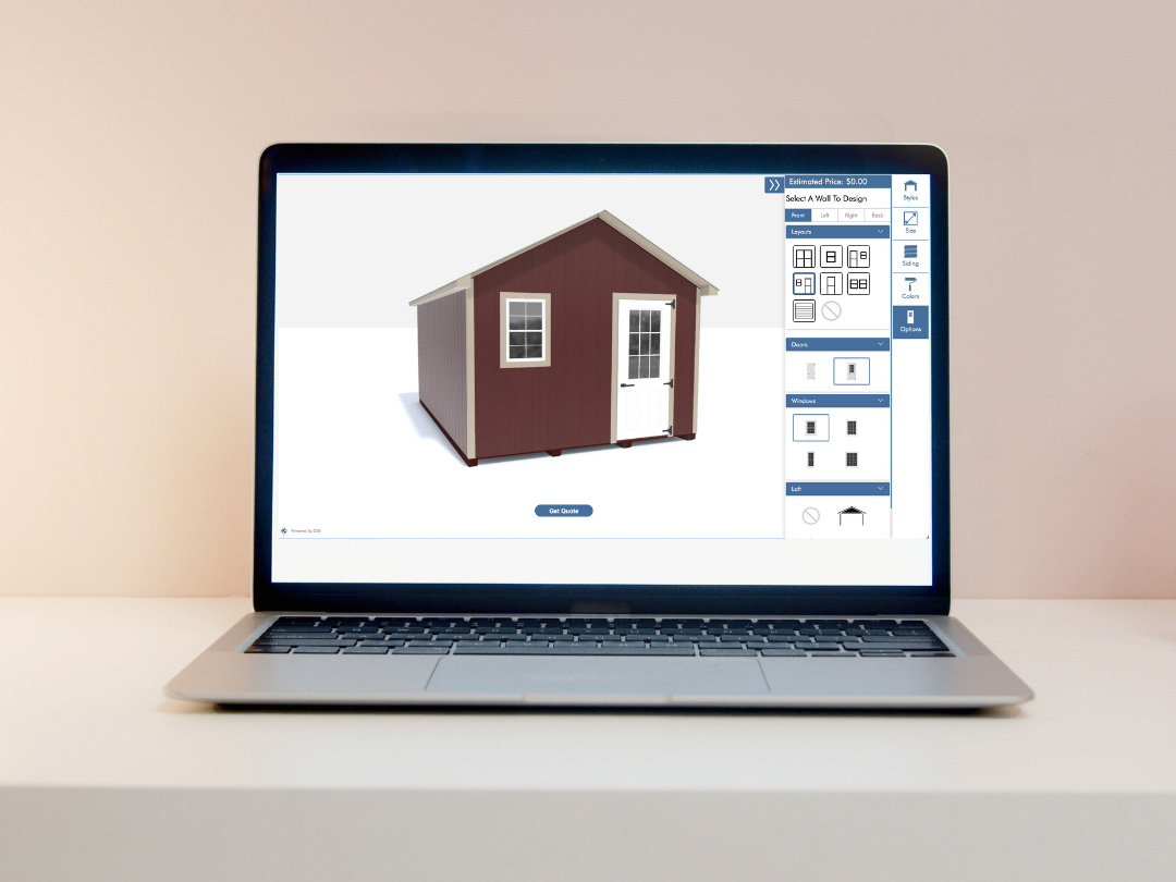 Customize the Look: Choose the size, siding, and colors from top to bottom.